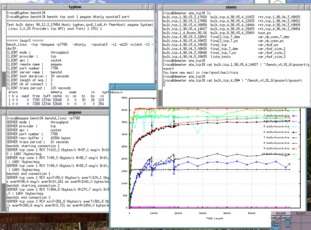 On the top xterm, the client part is run, and on the lower xterm, the deamon