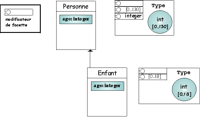 Pour résumer la situation on peut dire que c'est le slot qui décide s'il est possible ou non de spécialiser sa description en spécialisant ses facettes, mais chaque facette dicte les règles qui régissent cette spécialisation. Ces règles de spécialisation des facettes dépendent naturellement de la nature des facettes.