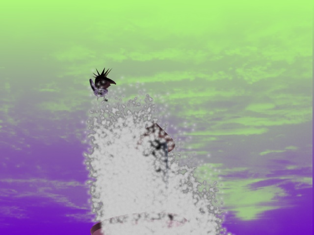 Un nuage de fumée s'échappe des réacteurs ( particules ) ( figure 13 ). La fusée entre dans une danse effrénée ( Key Frame ) et devient très vite incontrôlable ( l'a t-elle été ne serait-ce qu'une seule seconde ? ). Très vite, une explosion survient et une nouvelle fumée s'échappe envahissant le cockpit ( du moins, la plate-forme sur laquelle se trouve le roi ).